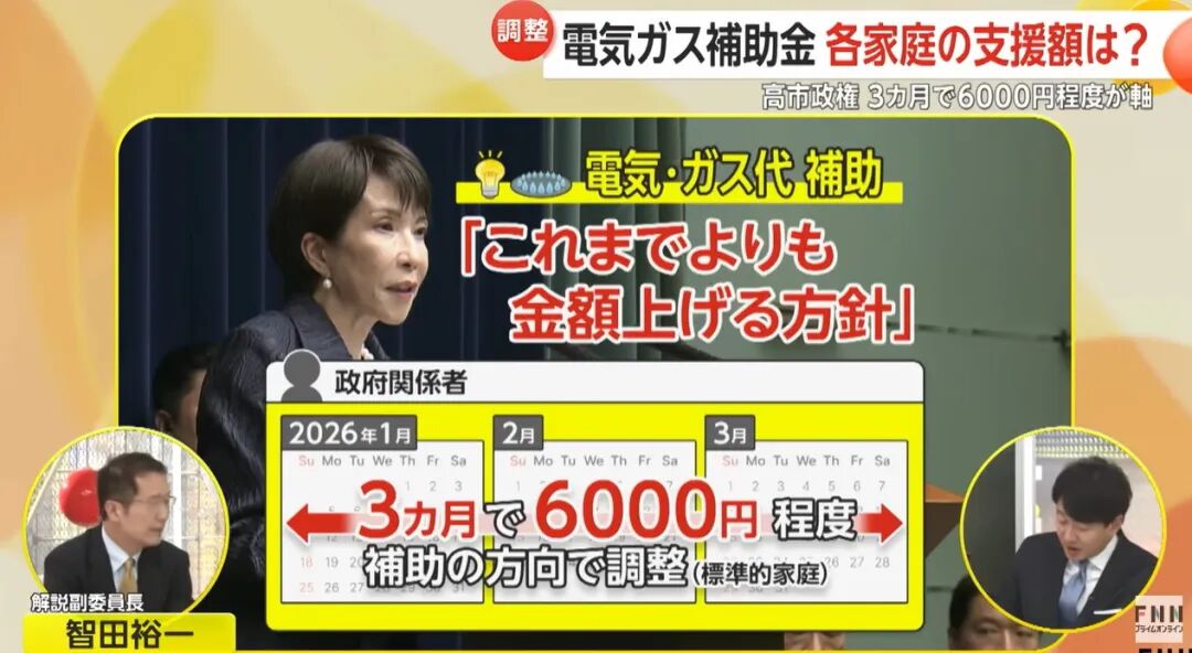 所以,在这样的大背景下,日本政府决定从2026年1月起,对电费和燃气费进行补贴。根据政府相关人士透露,补贴方案正在讨论中。