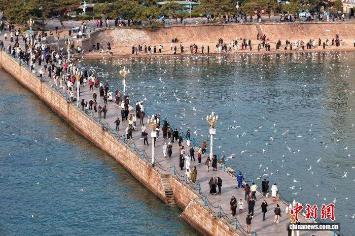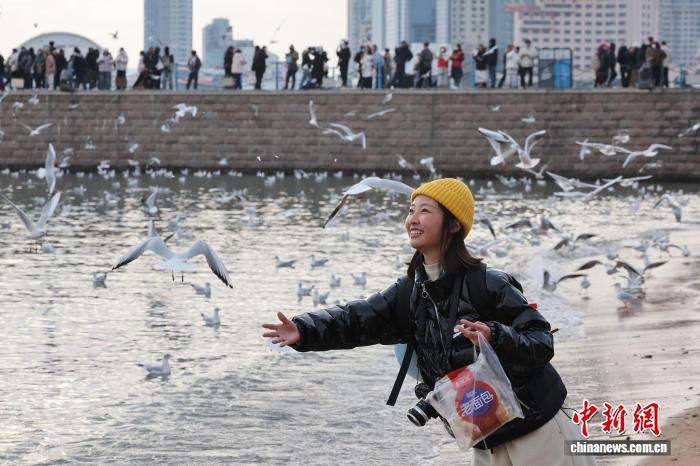 山东青岛:鸥舞岛城显冬韵 人鸥同乐映和谐