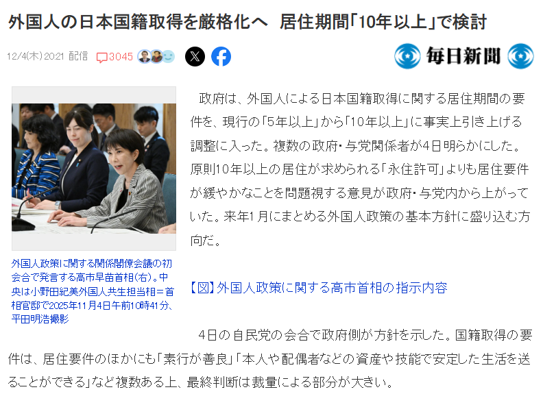 纵观2025年日本政府对外国人相关政策的多方位收紧来看,归化政策的门槛提高同样也不是孤立事件,一环扣一环,步步紧逼。