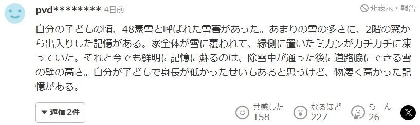 对于今年冬天的罕见大雪,日本网友也纷纷留言评论: