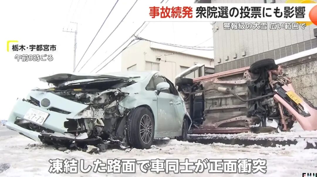 结果就是,路面结冰,城市道路事故明显增多。日本东京附近多地出现连环追尾、正面相撞,甚至还发生了列车与滞留车辆相撞的严重事故。这场“不太正常”的冬雪,正在给整个日本社会带来实实在在的冲击。