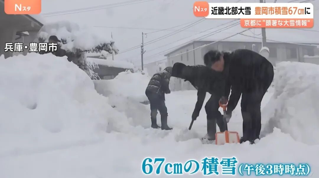 京都地区也下起了大雪,位于京都附近的兵库县丰冈市截至2月8日下午3点,积雪已达670毫米。