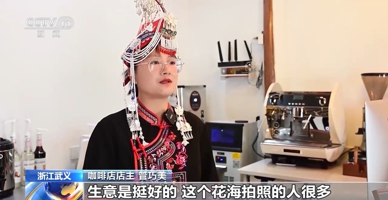 咖啡店店主管巧美:生意是挺好的,花海拍照的人很多。