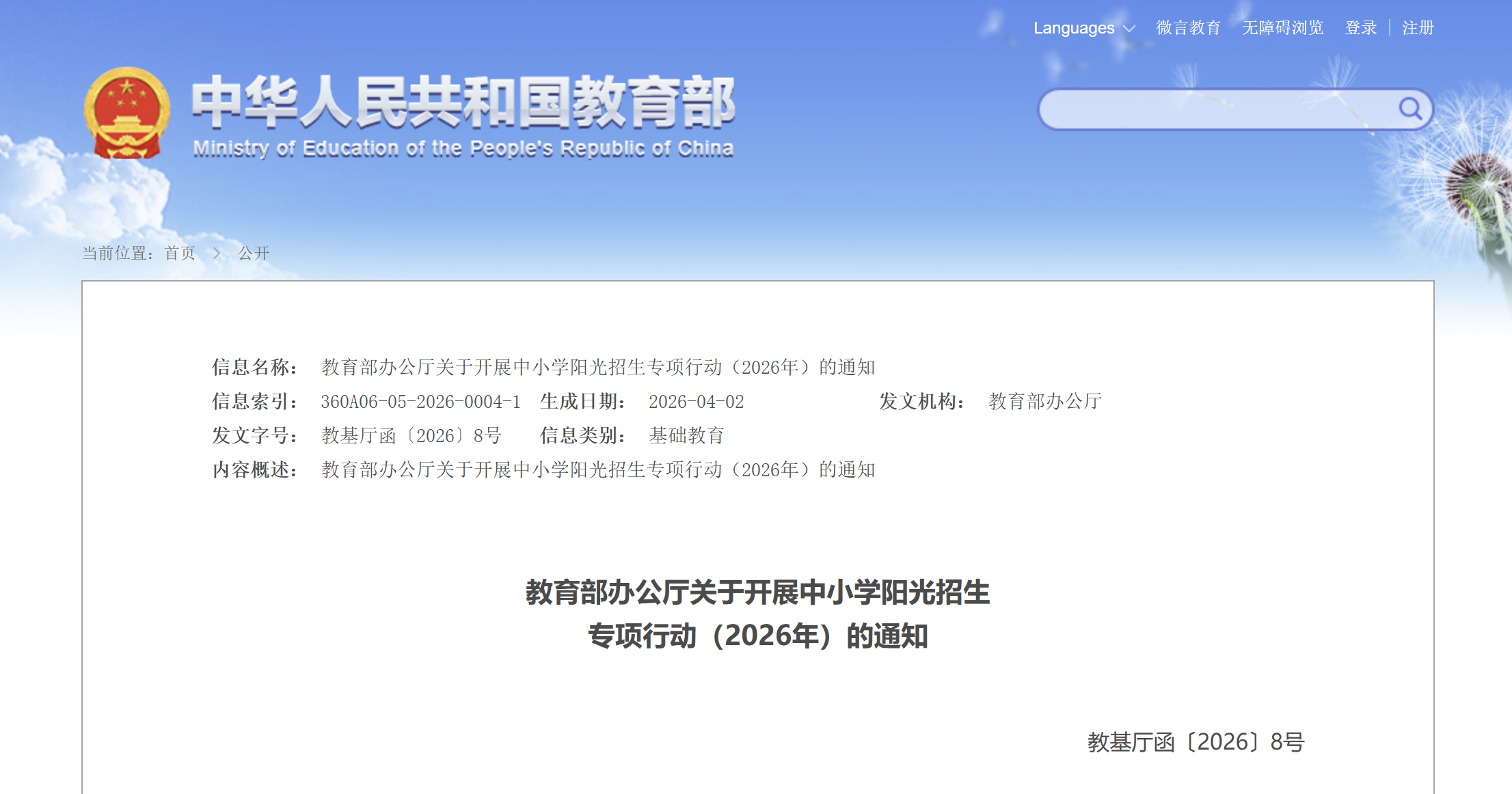 教育部中小学阳光招生专项行动(2026年):严禁各类变相提前招生,普高首次纳入覆盖范围