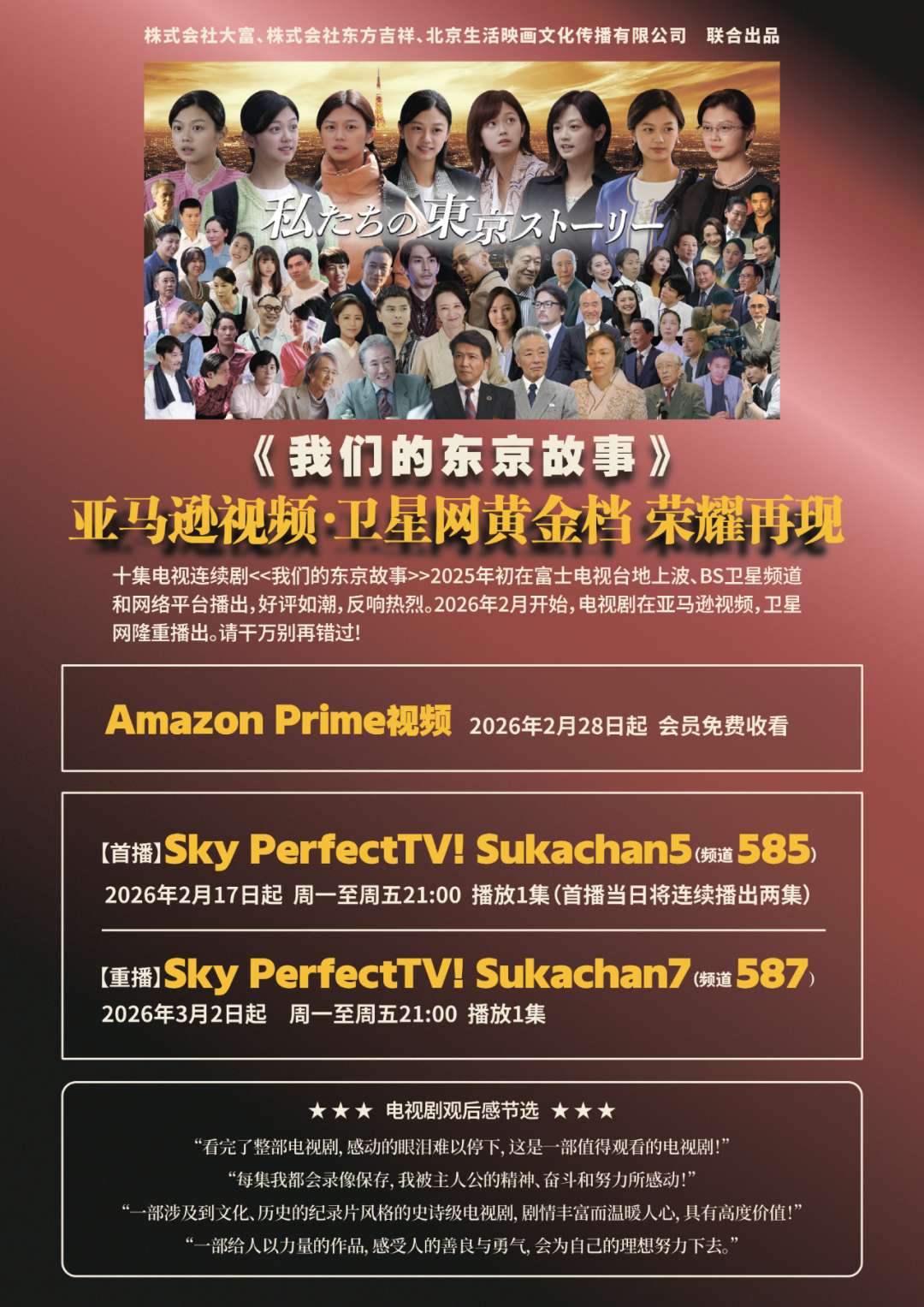 电视剧《我们的东京故事》于2月17日起在卫星网Sky PerfecTV! 播出,2月28日起在亚马逊视频播出!