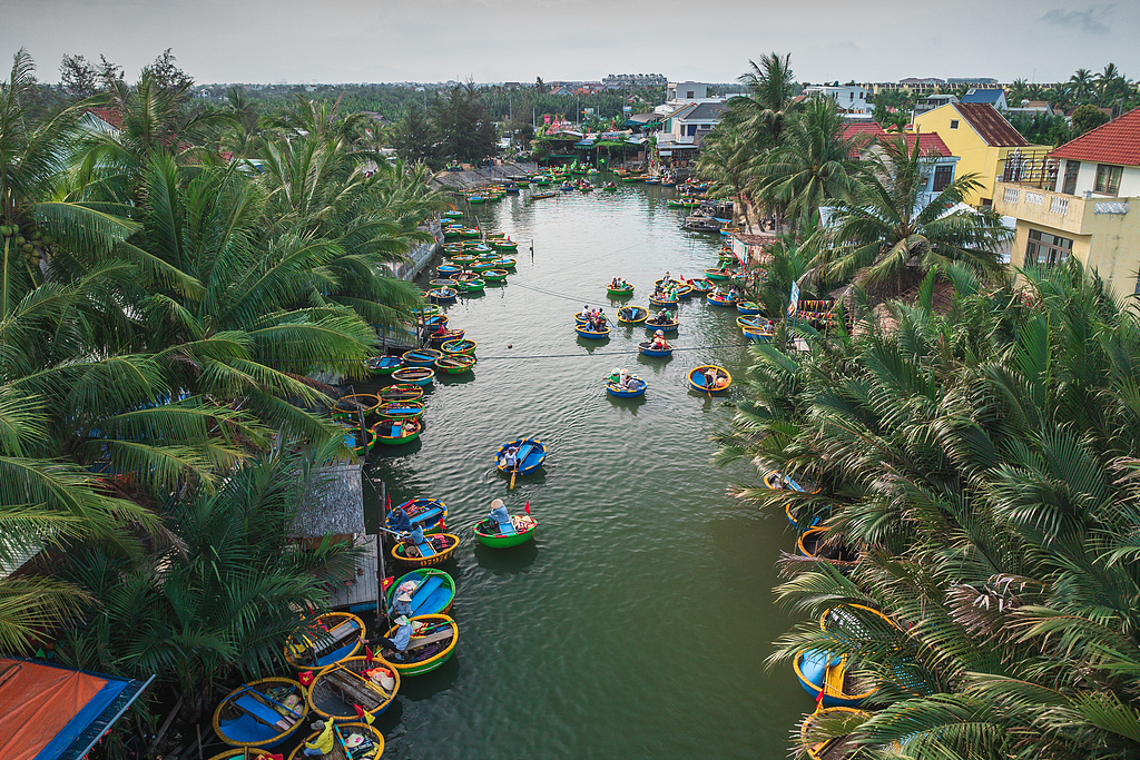 越南会安,游客乘坐当地特色椰子船游览观光。(视觉中国)