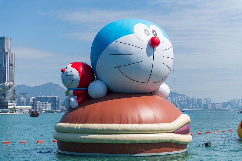 10月26日,维港海面上漂浮的哆啦A梦大型充气雕塑。(CFP)