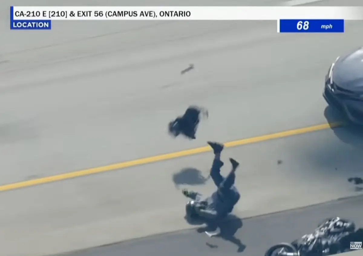 美媒:美国一枪手骑摩托车与警察上演公路追逐,枪手疑似试图“掏枪”时撞上前车摔倒