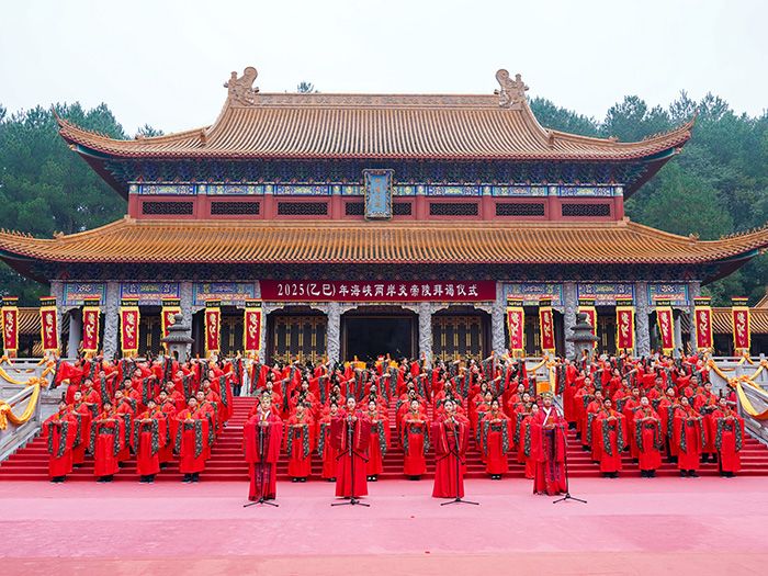 2025(乙巳)年海峡两岸炎帝陵拜谒仪式27日在湖南株洲炎陵县炎帝陵举行,两岸各界代表500余人参加仪式。