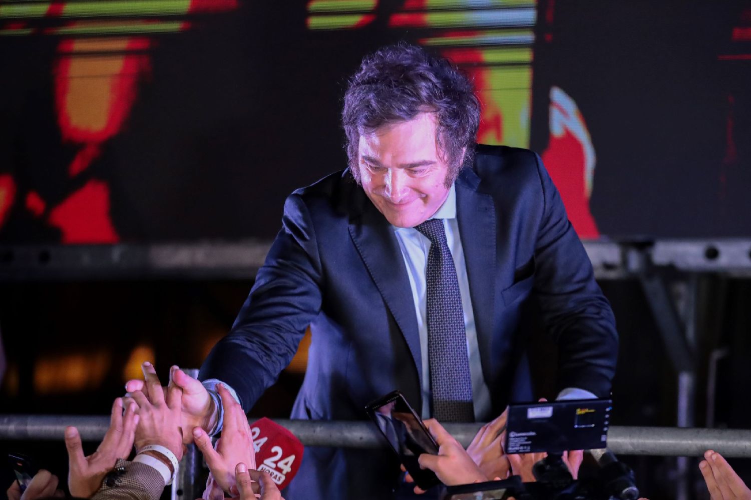 在“自由前进党”当天的选举之夜派对上,数百名米莱的支持者欢呼、拥抱、高喊口号,甚至流泪,庆祝选举结果。