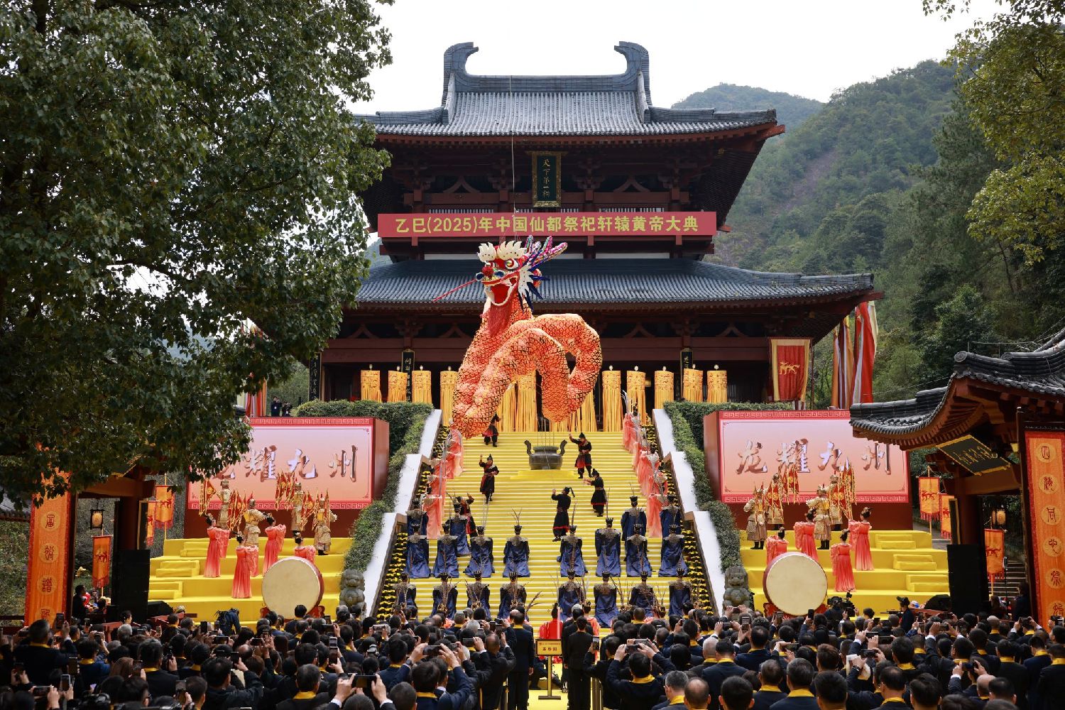 10月29日正值重阳节,乙巳(2025)年中国仙都祭祀轩辕黄帝大典在浙江丽水缙云县的仙都黄帝祠宇举行。