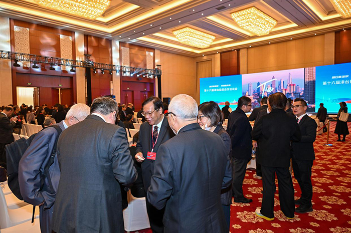 10月29日,与会嘉宾参加第十六届津台投资合作洽谈会会场沟通交流。 (图/新华社)