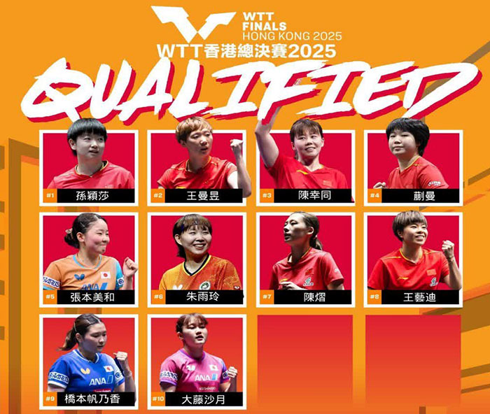 据大会10月29日公布,男子及女子单打阵容将由WTT总决赛积分榜排名前16的球员组成,包括王楚钦、孙颖莎、王曼昱、向鹏、张本智和、张本美和等。混双的8对参赛组合则由WTT总决赛积分榜排名前7的组合外加一对东道主外卡组合构成。