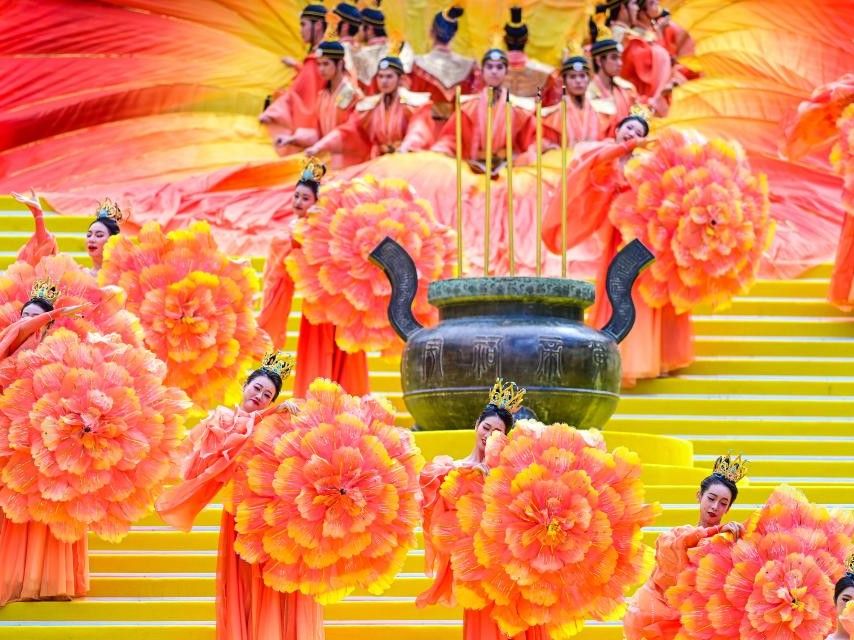 图为10月29日,演员在乙巳(2025)年中国仙都祭祀轩辕黄帝大典现场表演。(新华社)