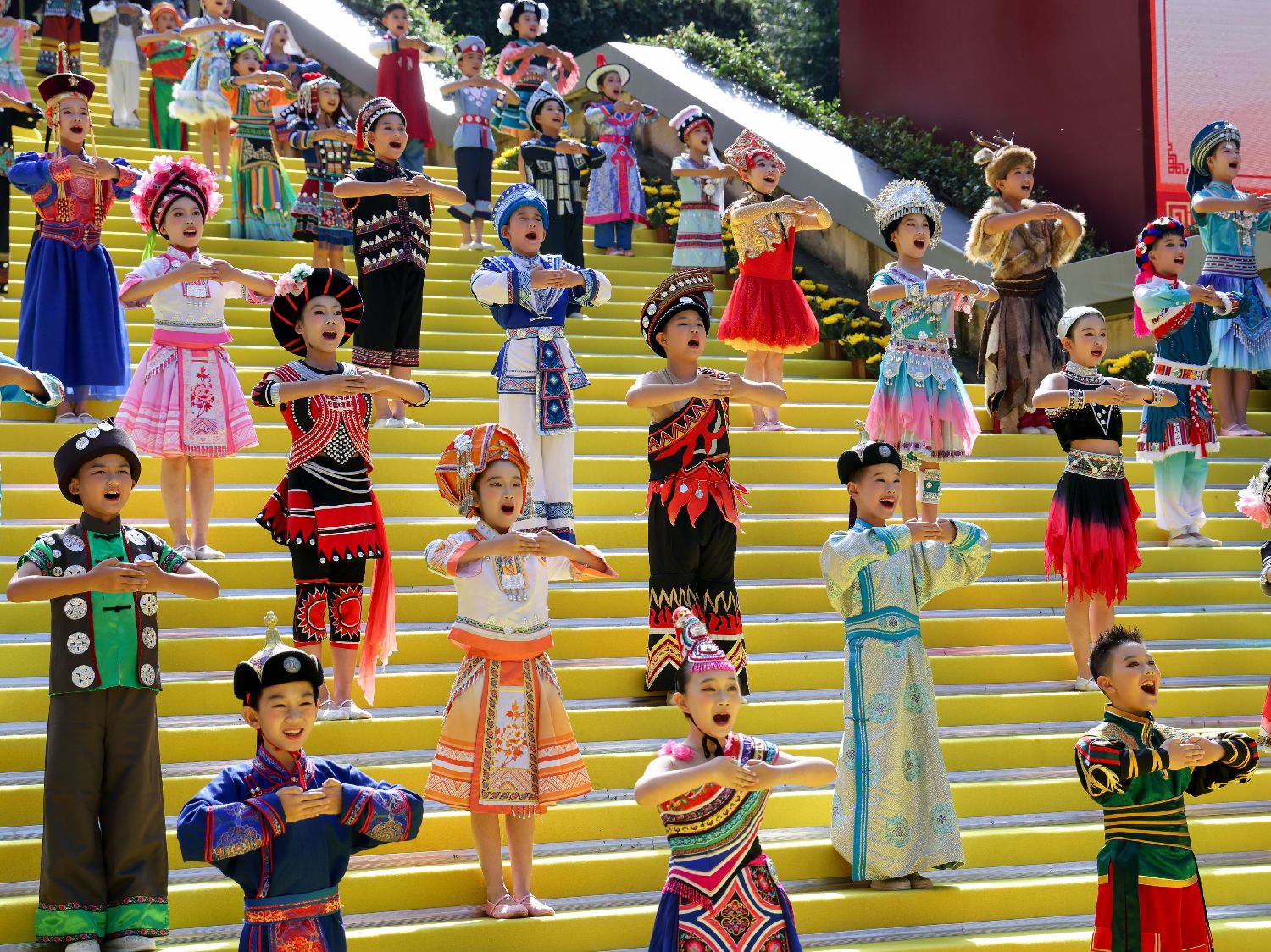 图为10月29日,大典现场66位儿童列队出场,合唱《轩辕颂》。(CFP)