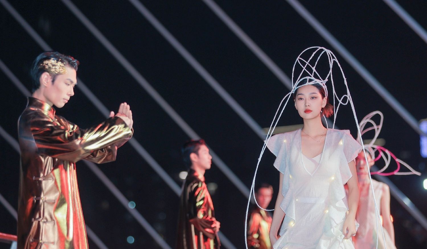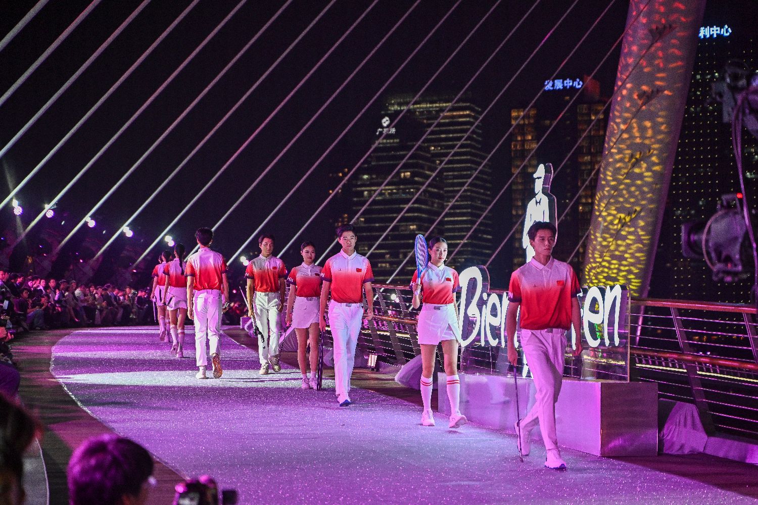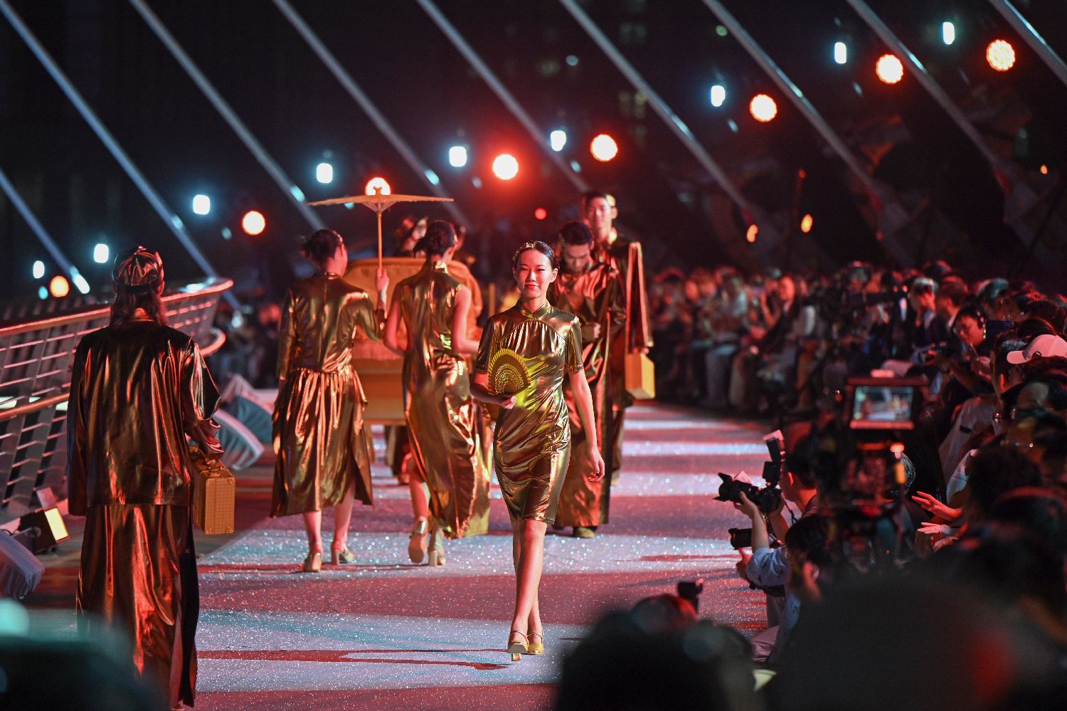 10月29日,珠江之畔霓虹闪耀,198米长的海心桥化身巨型T台,上演了一场融合科技与时尚的视觉盛宴。