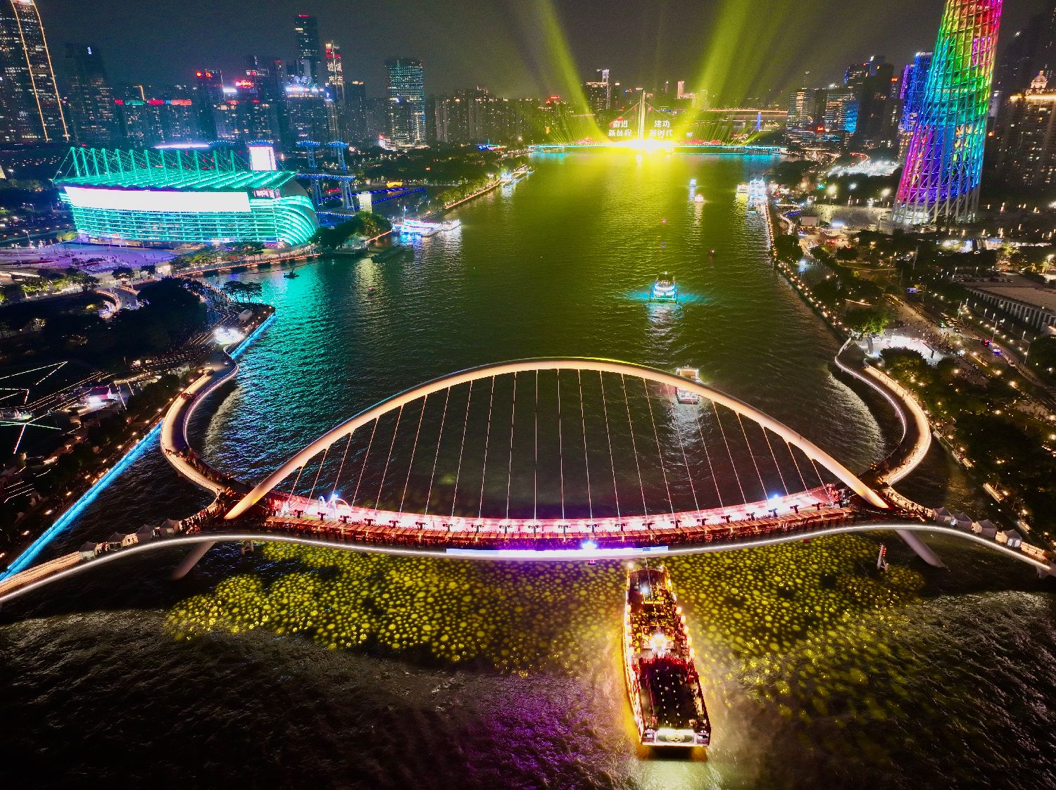 “广州之夜”灯光秀璀璨夜景。(《广州日报》)