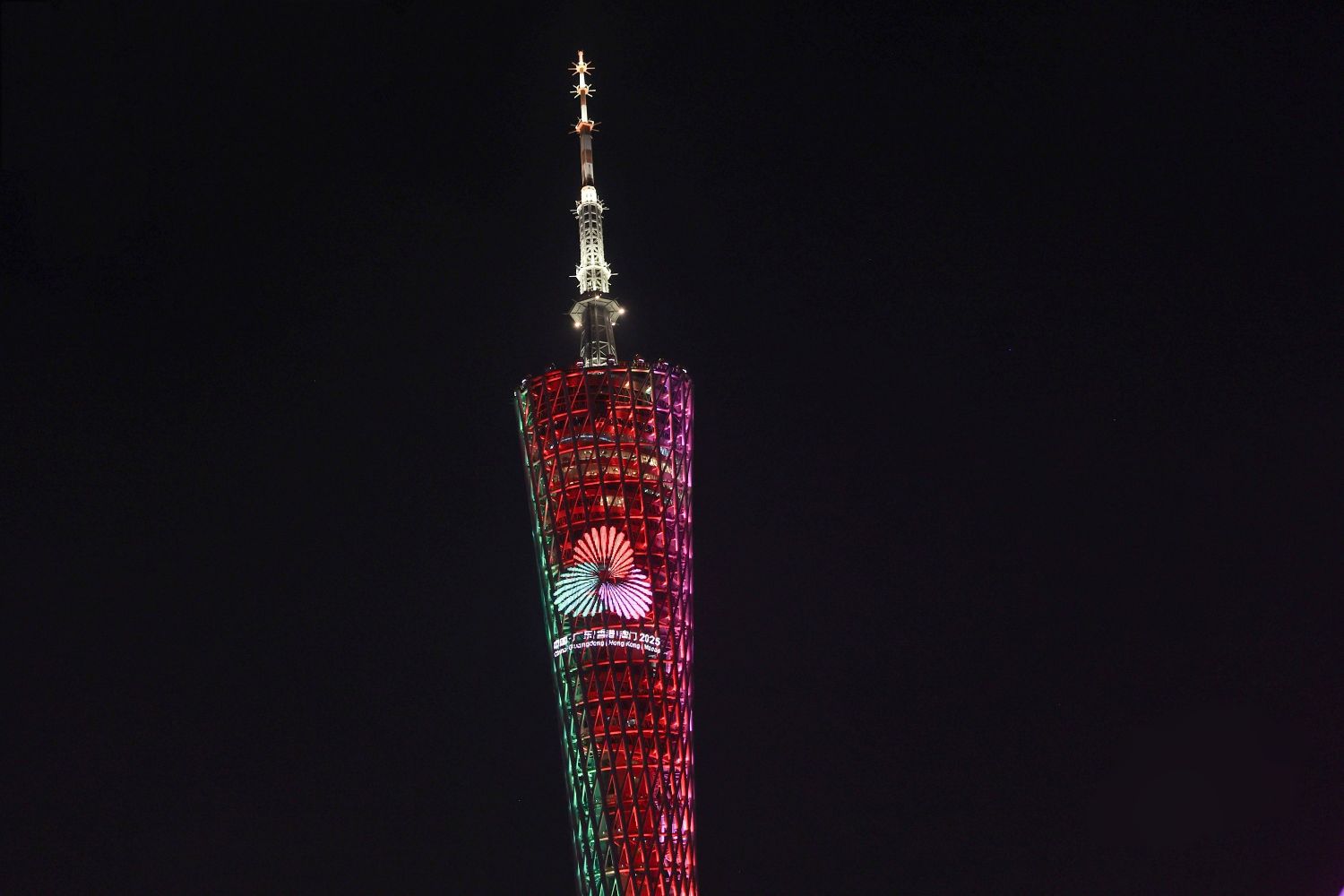 图为2025全运会LOGO亮相广州塔。(广州《南方日报》)