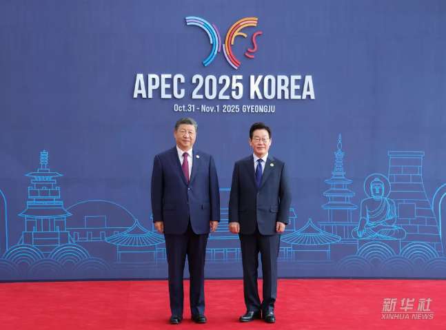 图为中国国家主席习近平与韩国总统李在明(右)合影。(图/新华社)