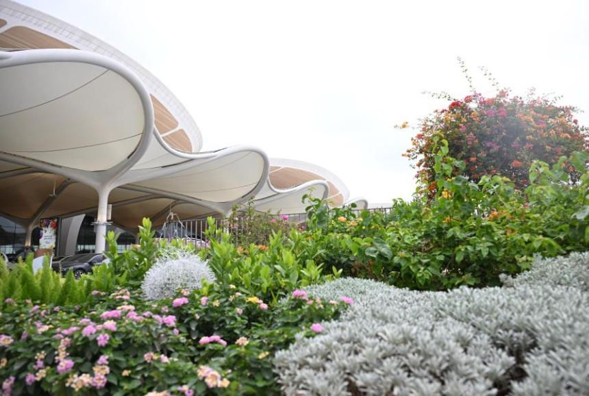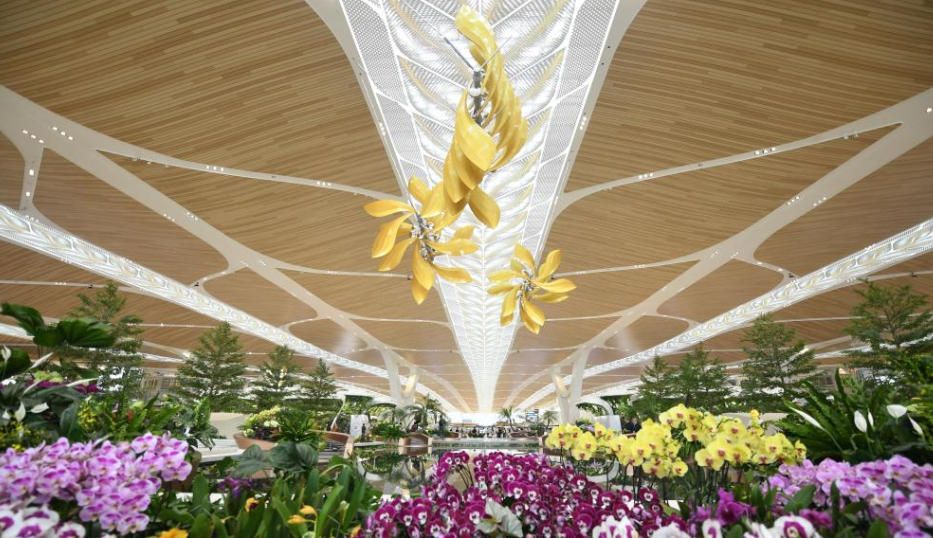 T3航站楼建筑造型以“花”为设计主题,融入“云山珠水”“花城”的广州特点。(中新社)