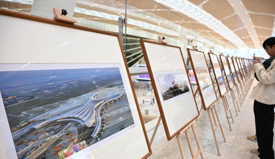 10月30日,在广州白云机场T3航站楼内,市民在参观摄影展。(新华社)