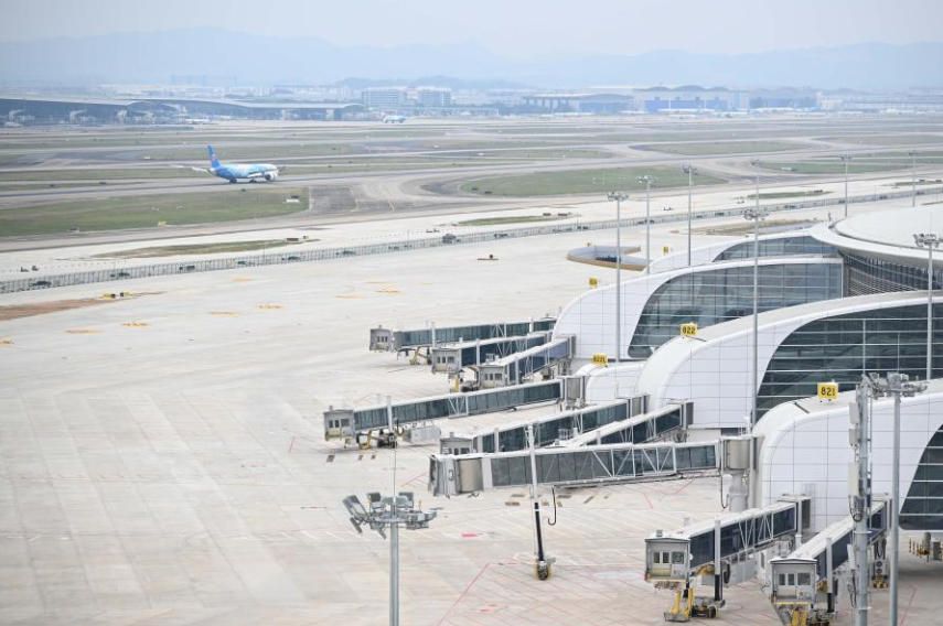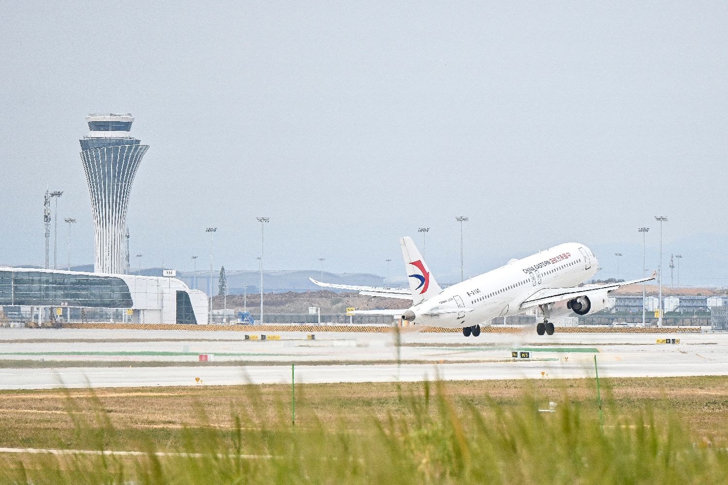 图为首航航班前往第五跑道。(中新社)