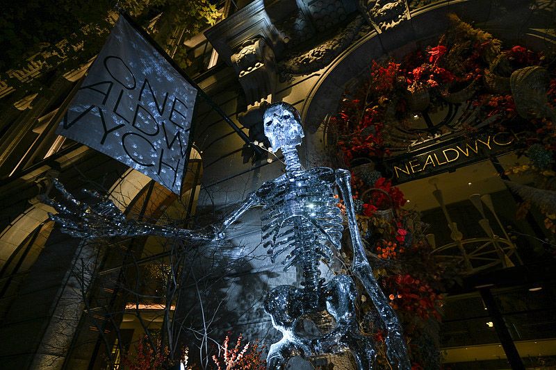 10月30日,英国伦敦,万圣节前夕,商店橱窗用骷髅和南瓜装饰。(CFP)