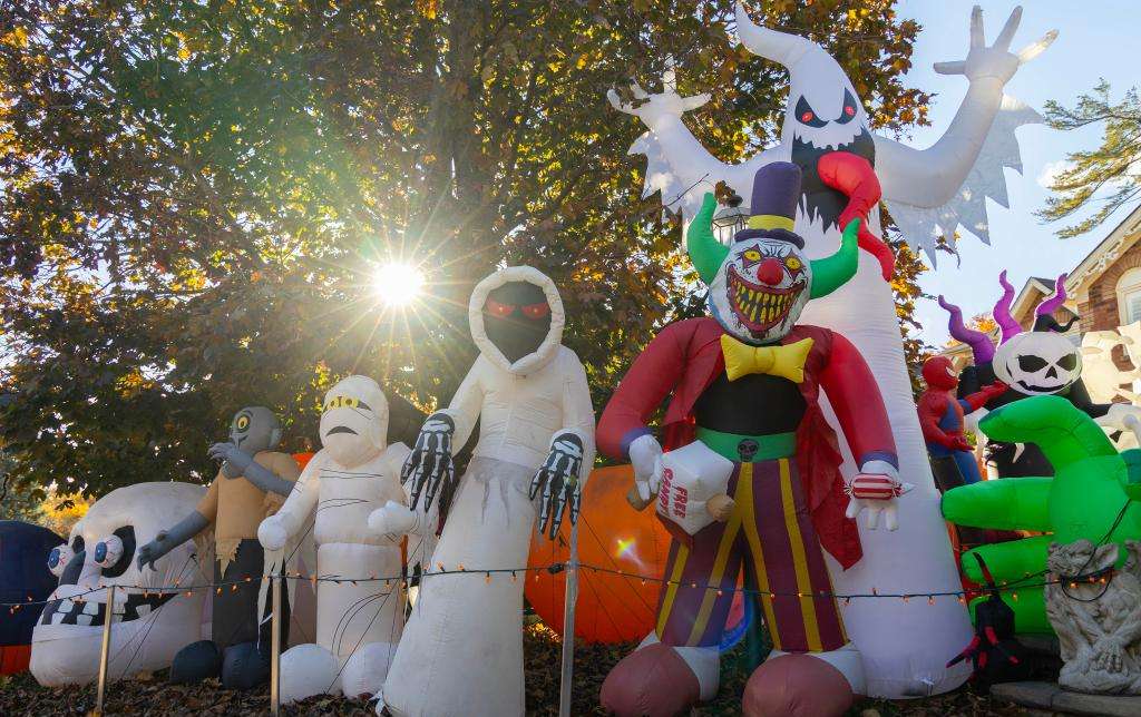 10月28日,万圣节将至,加拿大安大略省奥克维尔的不少居民用各类装饰品布置房屋前的庭院,以烘托节日气氛。图为一处房屋前的万圣节装饰品。(新华社)