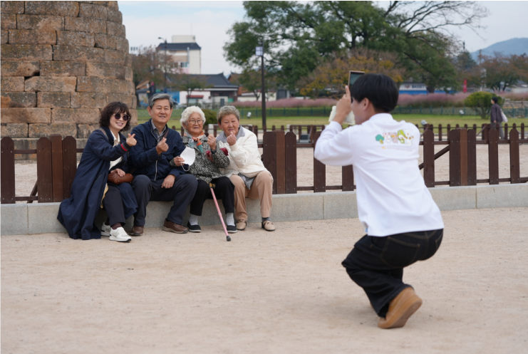 (图为2025年APEC会议期间,志愿者帮助当地民众拍照。邹志东/摄)