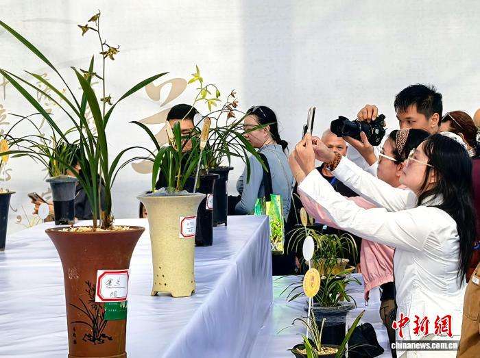 图为第四届南方花卉苗木交易会主会场,民众在欣赏兰花。李腾钊摄