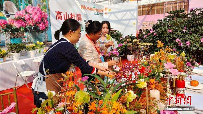 在贵州展区,融入家庭园艺的长桌花卉,配以橙色金韵杜鹃和浅绿色花朵的兜兰,引人注目。贵州云上杜鹃生态科技有限公司总经理刘娟表示,公司将海拔1000米至2000米的高山杜鹃培育后推向家庭,还打造了1000多种种子基因库,近两年相关花卉已出口至日本和韩国。
