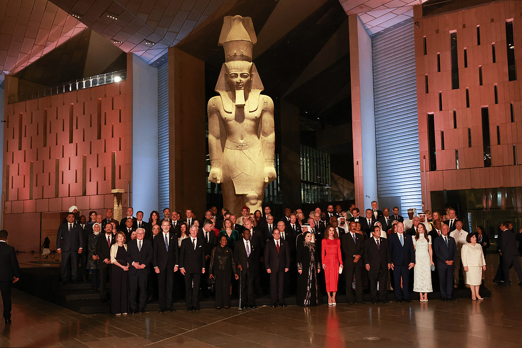 1日,多国政要出席大埃及博物馆开馆仪式并合影留念。(视觉中国)