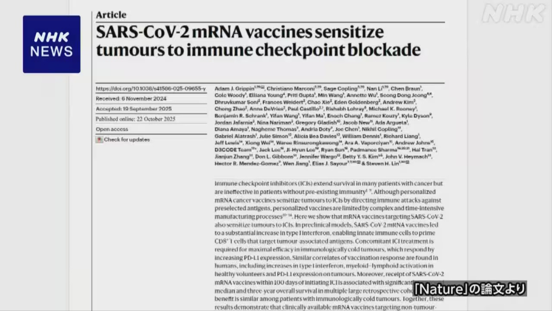 此前有报告称,在接种新冠mRNA疫苗的患者中,免疫疗法药物效果更好。