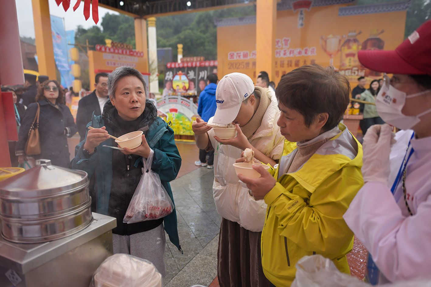 11月1日,观众在2025世界川菜烹饪技能大赛上观看烹饪好的川菜。(新华社)
