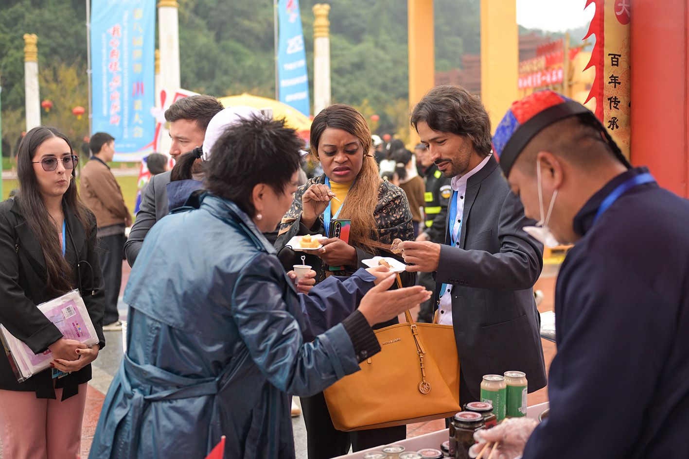 11月1日,第八届世界川菜大会在四川省乐山市正式启幕。图为世界川菜大会美食展区各种名小吃吸引民众品尝。(中新社)