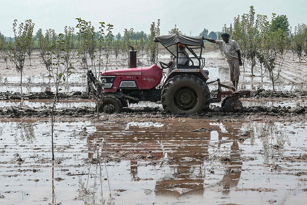 9月12日,暴雨过后,印度旁遮普邦谢赫扎达村的农田里一片泥泞。(视觉中国)