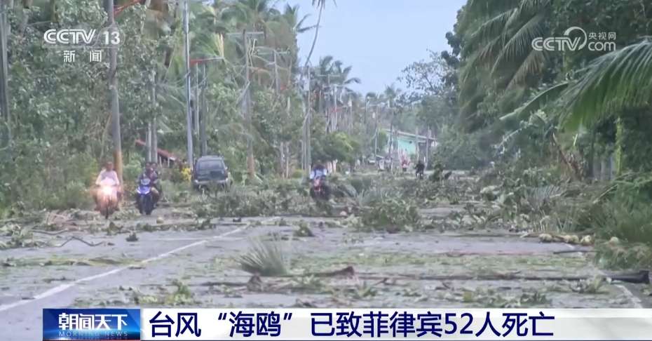 截至当地时间5日上午6时,今年的第25号台风“海鸥”已经导致菲律宾52人死亡。(图/中国央视新闻视频截图)