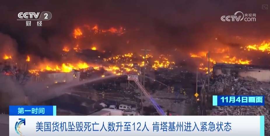 美国货机坠毁事故已造成至少12人遇难。(图/中国央视新闻视频截图)
