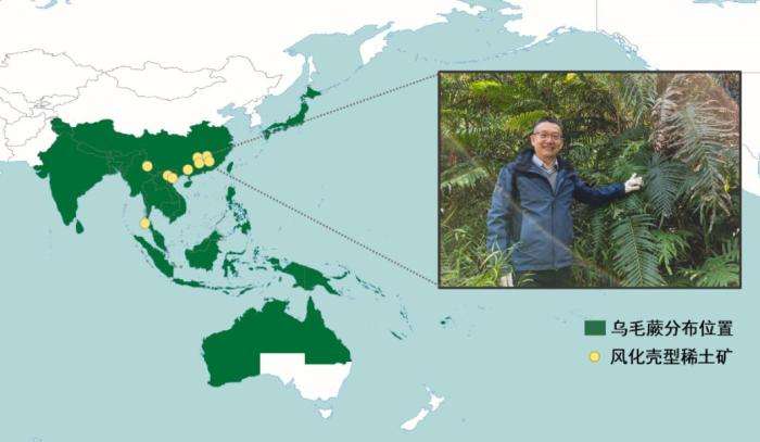 超积累植物乌毛蕨与风化壳型稀土矿的地理分布位置。中国科学院广州地化所研究团队 供图