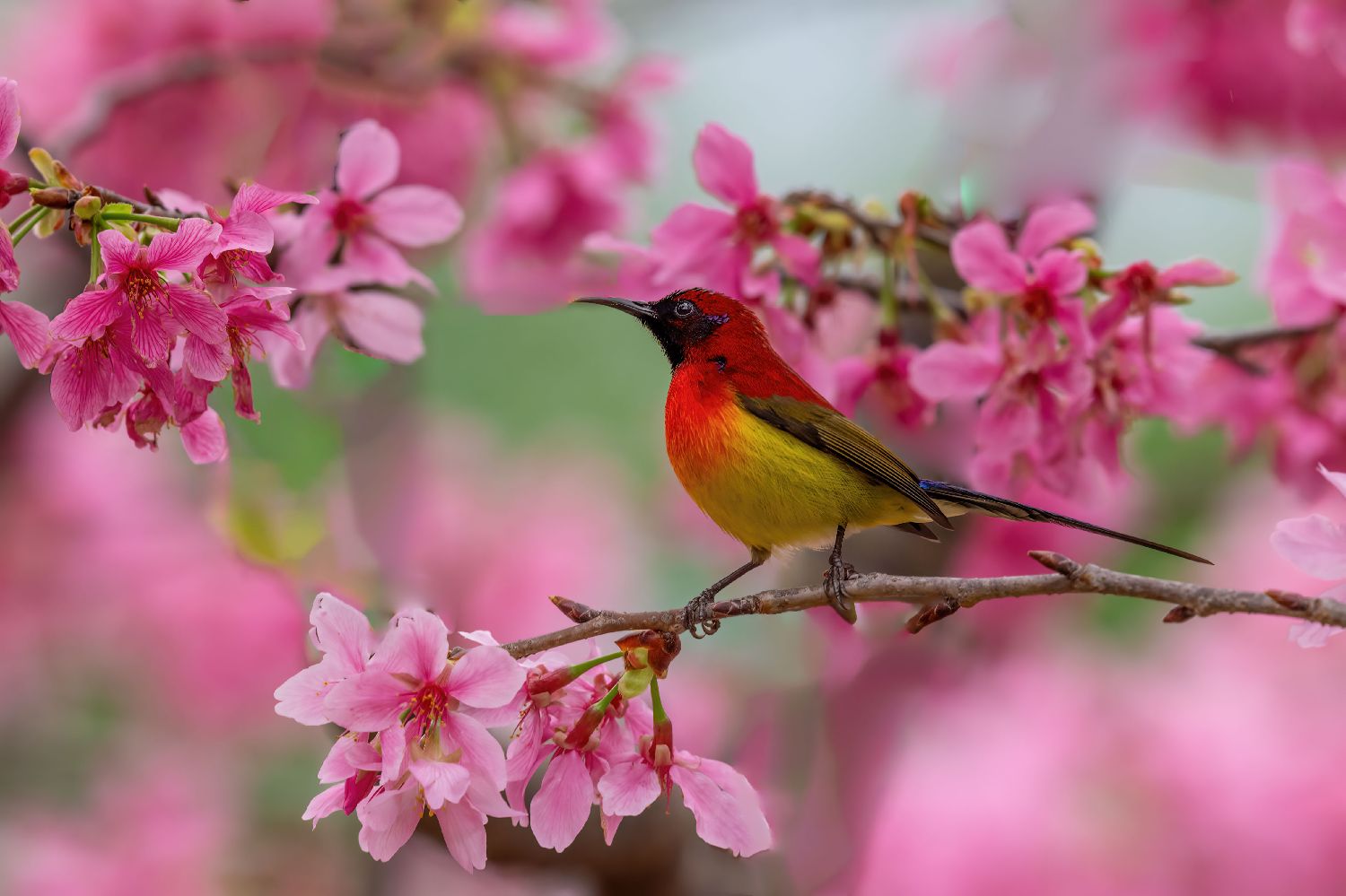 2024年2月23日,林秀文拍摄的蓝喉太阳鸟。(图/中新社)