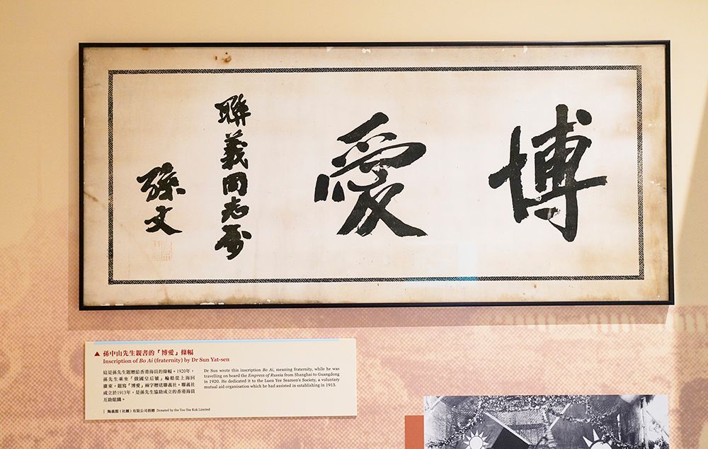 孙中山先生亲书的“博爱”条幅。(图/香港中通社)