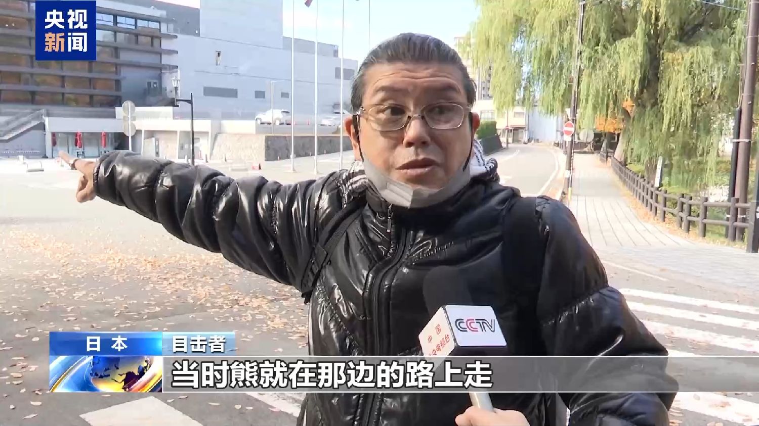 目击者:当时熊就在那边的路上走,现在秋田县已经全都是熊了。一只小熊差不多像一只大狗一样大。