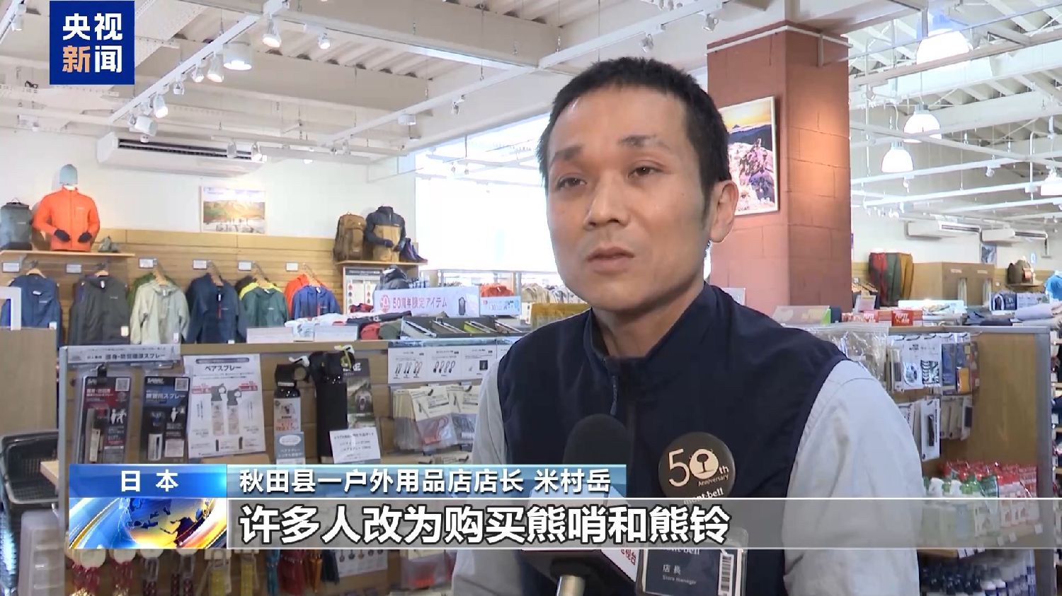 秋田县一户外用品店店长米村岳:由于驱熊喷雾已经售罄,许多人改为购买熊哨和熊铃。