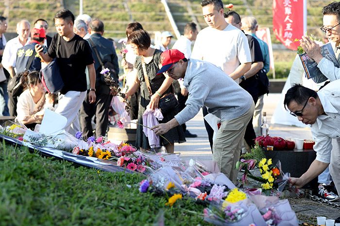 11月8日,台北秋祭白色恐怖受难者仪式在马场町纪念公园举行,民众自发前来献花。(图/中新社)