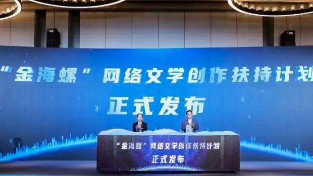 11月10日,2025中国网络文学论坛在福建泉州开幕。图为“金海螺”网络文学创作扶持计划发布仪式。(图/中新网)