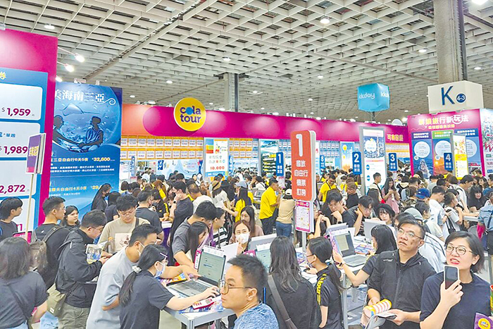 普发万元加持,台北旅展买气沸腾,各大旅行社整体业绩普遍较去年成长超过三成。(图/台北中时新闻网)