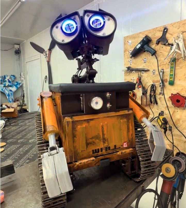 当《机器人总动员》中的“瓦力”走进现实时是什么样?这位“硬核”老爸做到了。近日,甘肃的一位父亲张先生挑战给儿子做100件“硬核”礼物的视频走红网络,这些礼物包括钢铁挖掘机、大吊车、推土机、大卡车……其中张先生手工制作的充满科技感的机器人“瓦力”备受瞩目,视频收获了5.2万点赞。