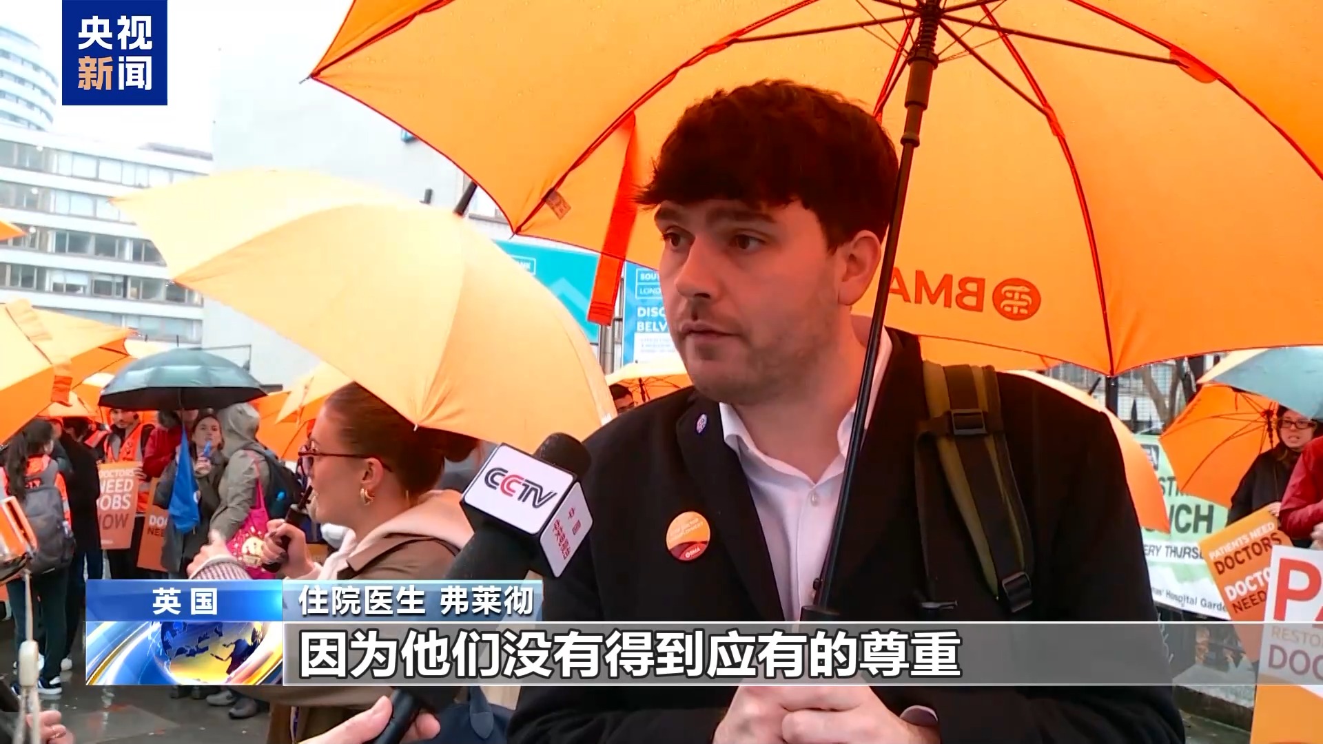 总台记者杨兢兢:英国英格兰地区的住院医生从当地时间11月14日开始,开启了为期五天的罢工行动,英国国家医疗服务系统可能面临着大量手术和预约改期的风险。组织此次罢工的英国医学协会表示,罢工并非医生们的本意,但是问题长期得不到解决、英国医疗系统面临着大量人手短缺的情况,却让医生们不得不再次走上街头。