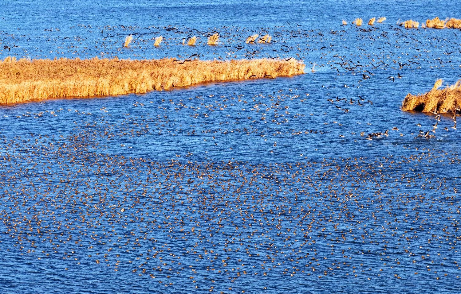 “京津冀最美湿地”衡水湖数万只候鸟齐飞形成“鸟浪”奇观,“观鸟游”热度近期持续升温。