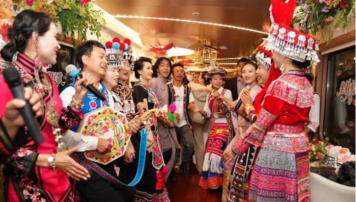 11月18日,“星光·澜湄号”列车上演云南民歌大联欢。(图/中新社)